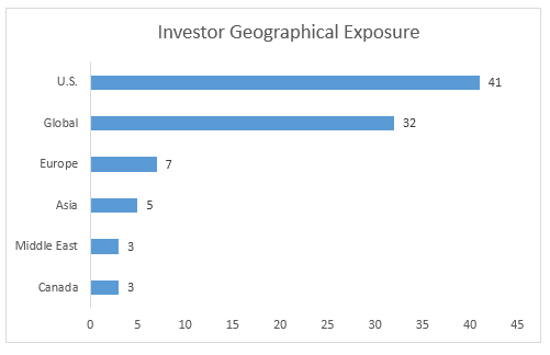 As you can see in Figure 3 below, almost half of these investors are interested in opportunities globally. The rest focus on one or several specific geographic regions, with the U.S. being the most common.