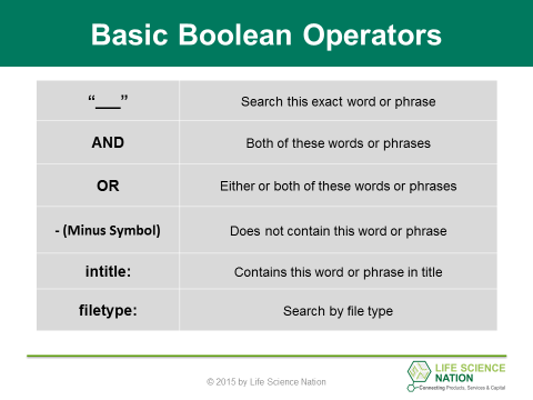 Experiment through multiple searches; you can go from very narrow to broad by varying the number of keywords and operators you use. Consider who might be interested in your opportunity from a number of angles, including geographic regions with government initiatives, people affected by the condition, potential strategic benefactors of your technology, as well as financially motivated investors looking strictly for a strong ROI. By doing this, you can build a strong target list of people to contact who may want to work with you directly or can refer you to someone else in their network who does.