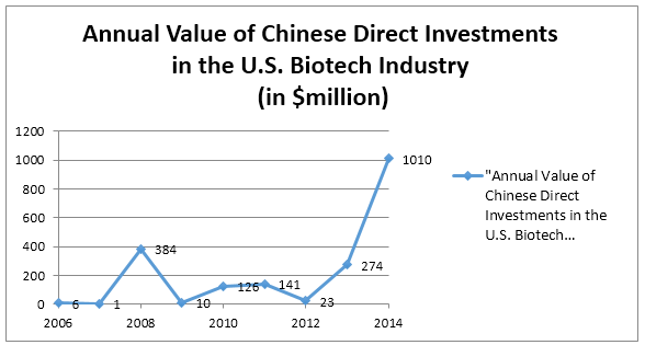 As China’s economy has grown over the past 10 years, Chinese investors have begun to allocate their capital to companies overseas, including those in the U.S. life science industry. Figure 1 shows that the annual value of Chinese direct investments in the U.S. biotech industry has increased most rapidly in the past two years.