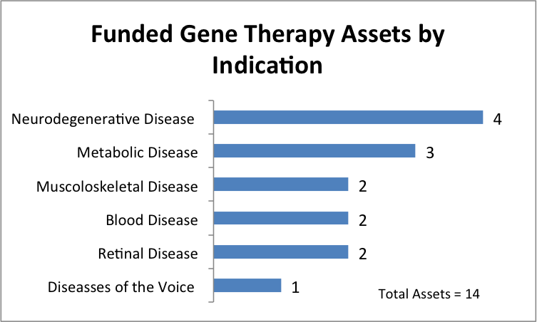 Figure 2 | Funded Gene Therapy Assets by Indication Data from the LSN Company Platform | October 13, 2015 *Data of the five largest gene therapy funding rounds ranged from $45M-$75M