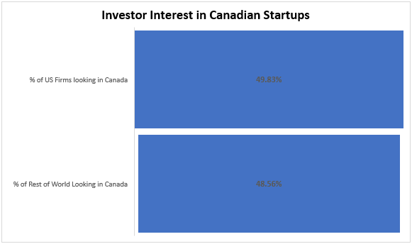 Taking a look at the LSN investor platform, the below data shows the percentage of investors in the U.S. and the rest of the world (excluding Canada) that have stated they are actively looking for technology in Canada.