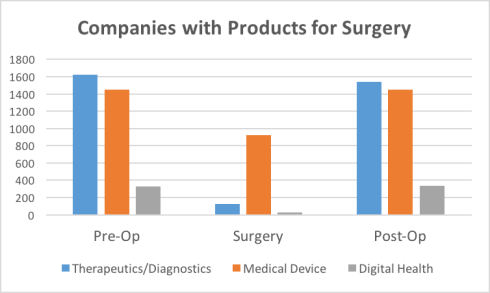 When we look at these new products that entrepreneurs are showcasing at RESI, we see that they run the gamut from iterative (100 million + in market potential), to breakthrough (one billion +) to transformative (one trillion +). The LSN Company Platform additionally collates information on tens of thousands of life science companies around the world. As an example, we used the Company Platform to search for companies with products for surgery, and this is what we found: