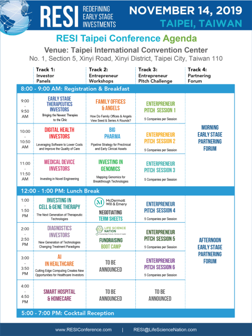 At RESI Taipei, we will draw on the local expertise for our new panel on Smart Hospital & Homecare, plus the return of two sessions that tap into Taipei’s local expertise – Investing in Genomics and Investing in Cell & Gene Therapy.