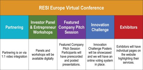 The RESI exhibitors and sponsors will be featured on a dedicated page with a virtual exhibitor booth, showcasing their services and the value they can provide. Participating tech hubs can highlight their programs and constituent companies.