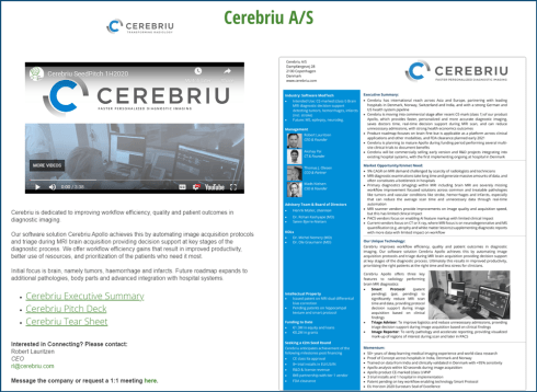 As we have announced, April marks a new milestone for the RESI Conference Series with our first ever Digital RESI 2-Day Partnering Event taking place at the end of the month. Not being a full RESI conference means there is no Pitch Sessions, Innovation Challenge or Investor Panels, but companies who wish to get greater visibility can showcase their technology in our new Featured Company Forum on the event website. Your company logo in the Forum will redirect interested parties to your own landing page, allowing you to highlight your company with your 1-page data sheet, Executive Summary, Pitch Deck, etc. See an example below.